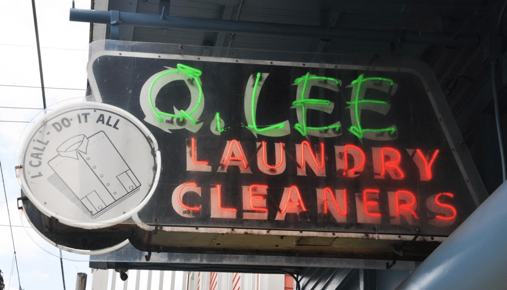 … and has been “restored” (I guess fixed neon & maybe components and cleaned the plexi coverings) — this photo below from Q. Lee’s FB page — link below for photos of the reinstallation a few weeks ago: