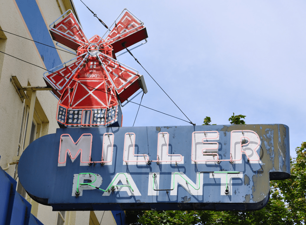 Miller Paint in Portland, OR has been sold to Rodda Paint. This store closed and the sign is gone now: