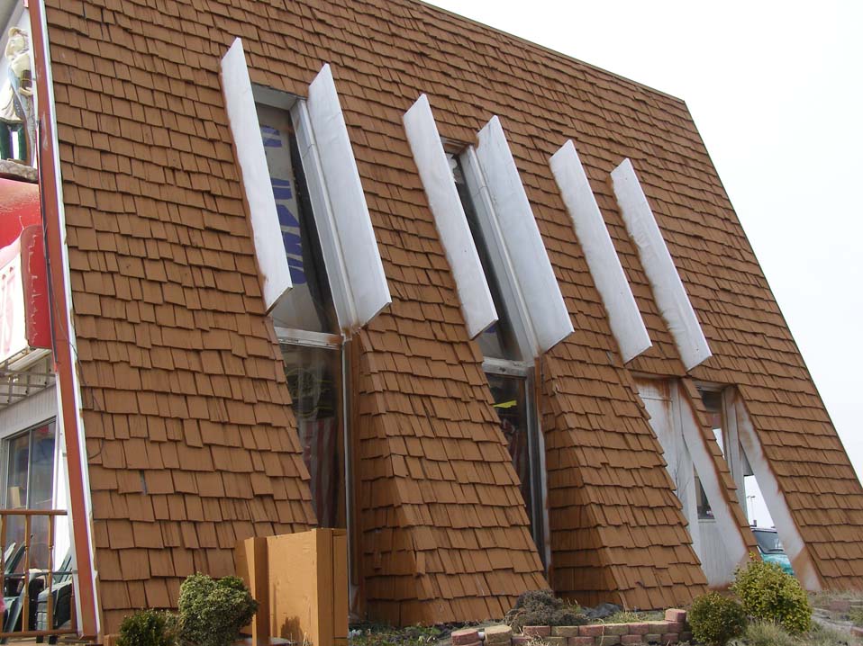 Now THIS is much more my thing — from Ocean City, MD. It has to be mid-century but is so tarted up with shingles that it’s hard for even me to say I love it.