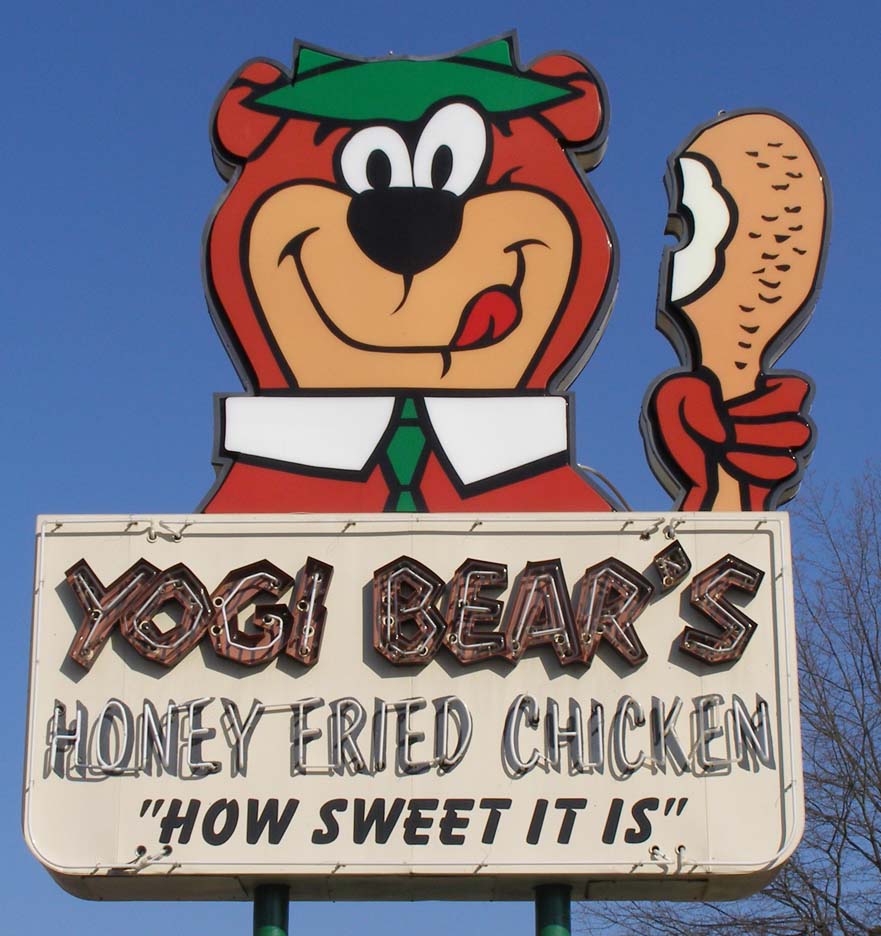 This new sign is from Hartsville, SC. This is actually the last location left of a 1960s/1970s Southeastern chain that was licensed to use Yogi Bear’s image.