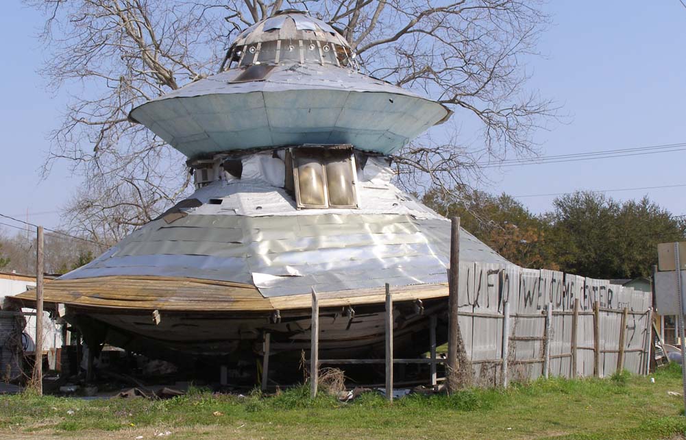 I made an out-of-the-way trek out to Bowman, SC to see this place: the UFO Welcome Center. It’s looking pretty rickety and I have a feeling it won’t be around too much longer. Here’s some info about the place.