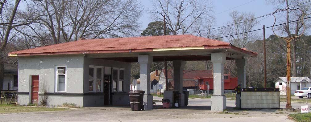 A couple well-worn oldies for you today. This former gas station is in Ehrhardt, SC. It was obviously a Phillips 66 at one time as evidenced by the shield sign framework on the right.