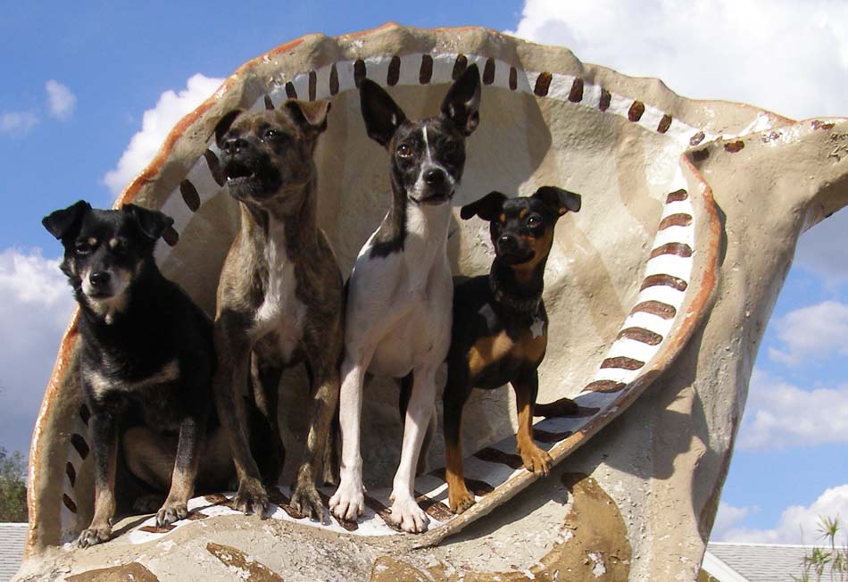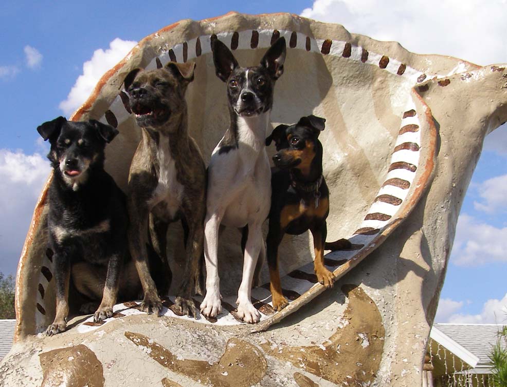 When I was here in FL several years ago, I posed my dogs with the giant shell at the Shell Factory. So I wanted to update the photo (different pack members now). The passing tourists are always shocked that my dogs will stay up there while I shoot. They are about 6′ off the ground and the shell is curved and slippery. I have to put each one up there and then carefully take each one down (harder). It’s not easy getting all four of them to a) look at the camera and/or b) look like they want to be there for these posed photos. Here are a couple of particularly bad outtakes where everybody has goofy and/or tired expressions.