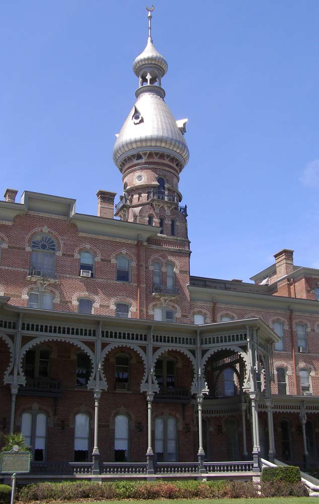 This building in Tampa is quite impressive. The Henry B. Plant Museum is housed in the former Tampa Bay Hotel which was built in 1891. The reflection from the intense sun wiped out the most dramatic part: the minarets are extremely shiny silver.