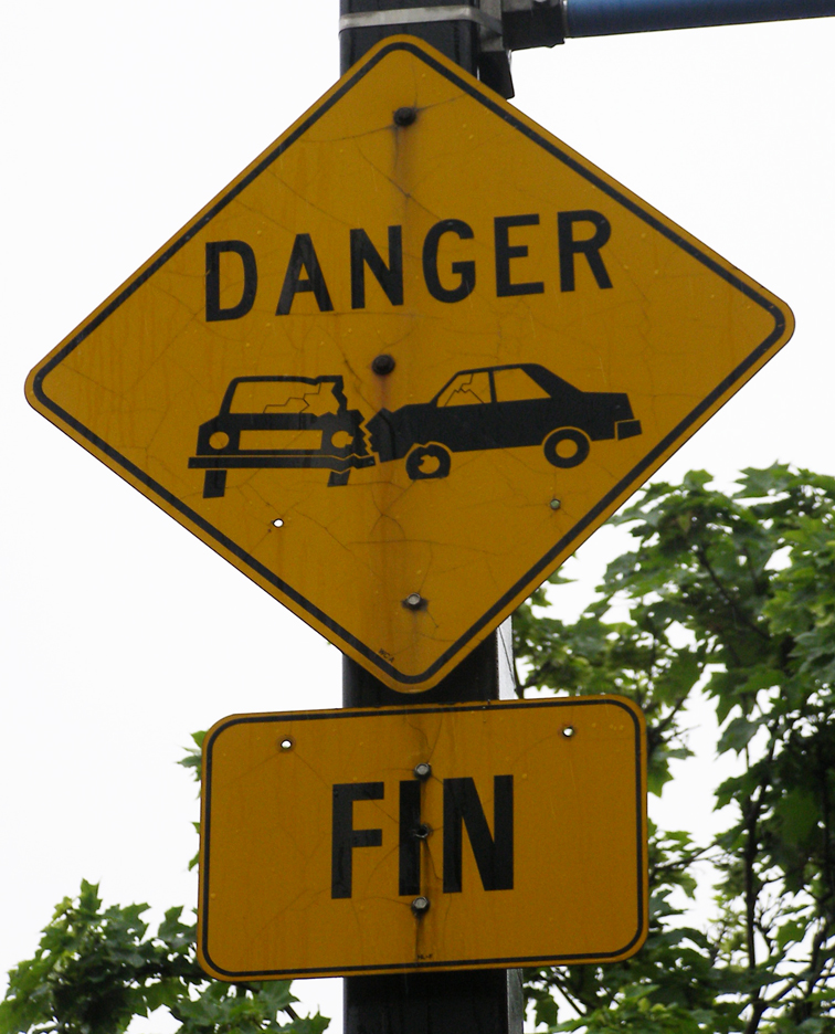 Another scary street sign. I guess when there have been a series of accidents in an area, they put up these “Danger – Debut” and “Danger – Fin” signs. So when you leave the “Fin” zone, you can go back to not being as careful? I think it’s strange. And scary. I find myself imagining what happened – and what caused it when I’m in the zone.