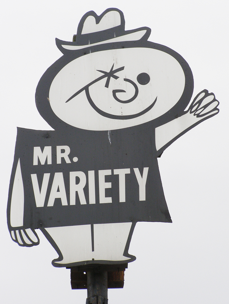 Mr. Variety is perched on top of the Variety Homes Corp sign in Newington. Love him!