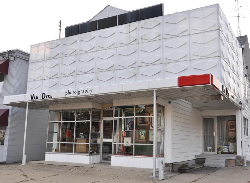 And lastly, in no particular order or theme tonight, an apparently mid-century embossed plastic facade. Love it. This one’s in Flint, MI: