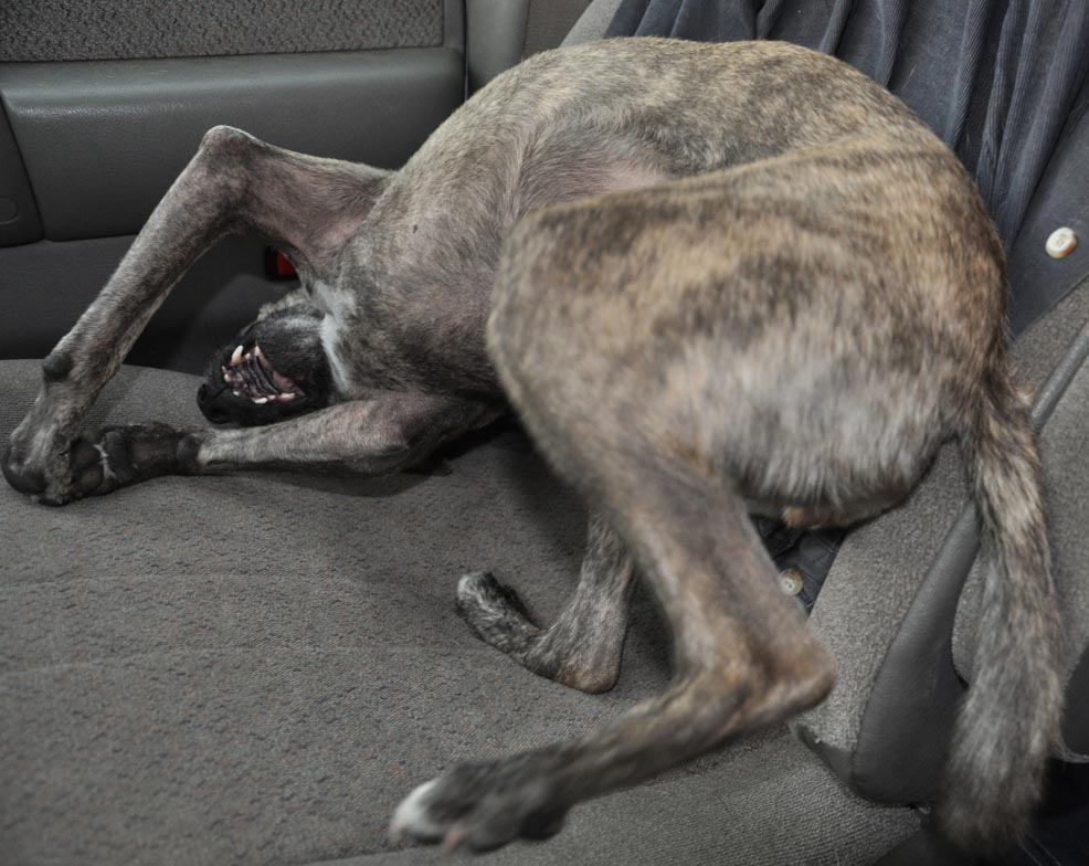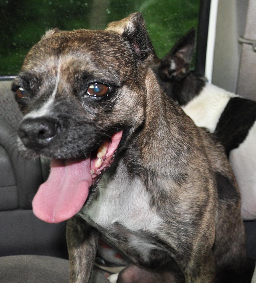 One of my passengers is terrified of thunder and lightening. And there was a lot of it. Poor Fixie, all these years, instinct they say. Even though the rest of us are all acting normal and I do my best to reassure her. She gets into this internal funk like it’s the end of the world. Panting, trembling, miserable. (crappy photo taken while driving, not even sure what the setting was)