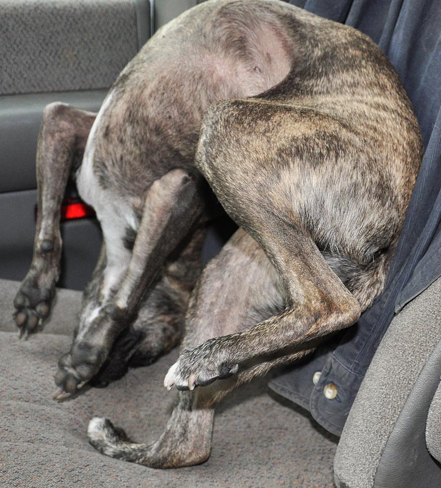 You know it’s getting towards the end of a busy day when there are those damned stickies everywhere. I don’t exactly know how this happened — I swear it wasn’t staged! This is an overhead shot of Grem in my lap. Taken while driving, naturally.