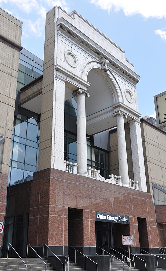 This odd structure in Cincinnati with the columns is a replication of the Albee Theatre facade. The theatre was located nearby and torn down: