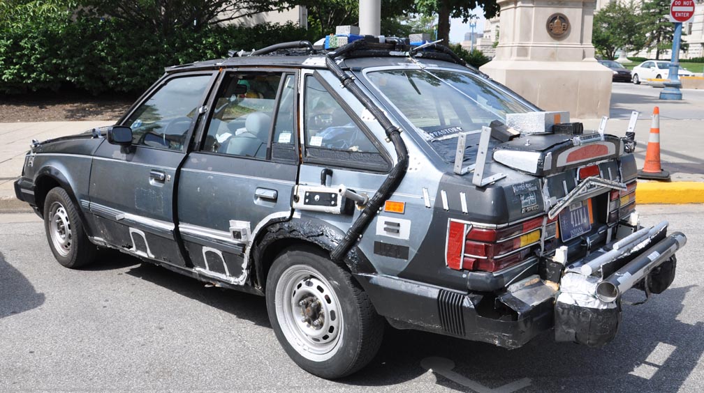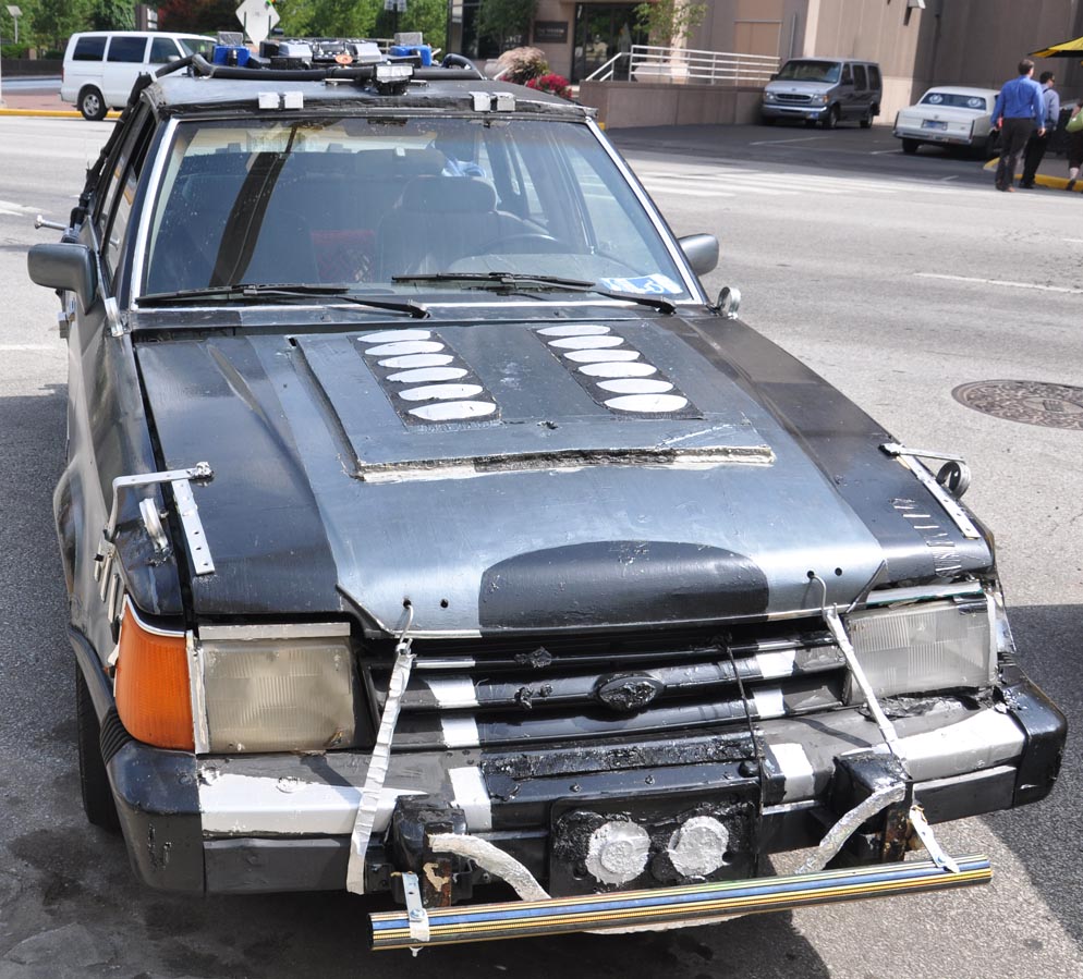 As I was taking some photos downtown, I noticed this low budget art car. A woman said that “Charlie” owned it and that he’s always sticking new stuff on the car.