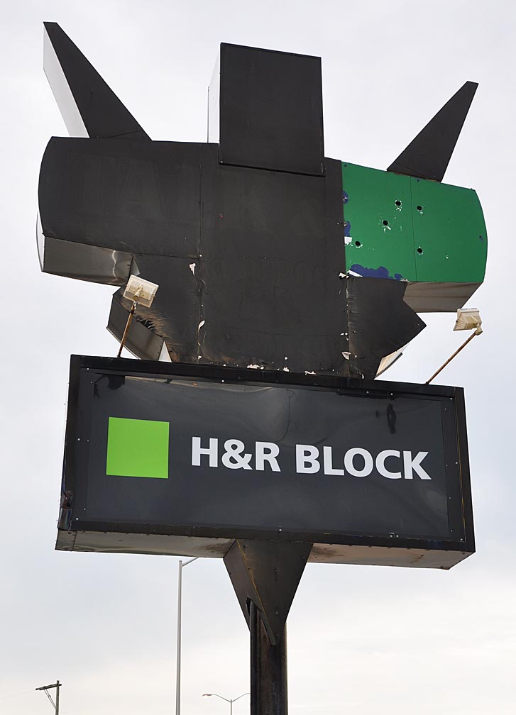 I noticed at least three of these repurposed signs in Indianapolis. The one for Dunkin Donuts was the nicest and it revolved. One not shown was for a paycheck cashing place. What did they advertise for originally?