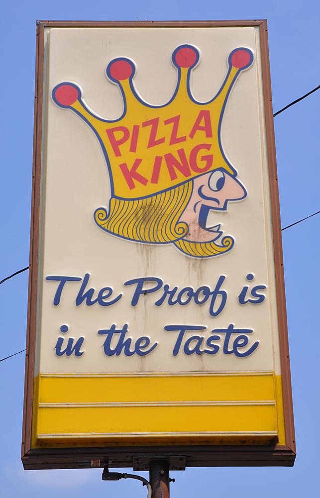 In addition to the nice Pizza King neon crown signs, there are a lot of these plastic king signs scattered around Indiana. This one in Rensselaer I believe.