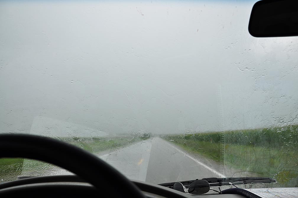 Grey skies finally turned to rain in the afternoon. Pouring so ridiculously that it forced me to cut off a couple hours early. Looking over the photos, the colors seemed to get more muted as I went. And then the raindrops streaking across the image. And even though I was protecting the camera as best as I could from the rain inside the van, there was still rain bouncing off the door and onto the lens. Better luck tomorrow.