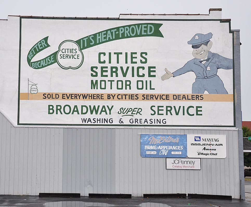 From Lincoln, in between downpours. I don’t know if this was the original painted wall sign that’s been restored or if it’s just a general nostalgia piece.