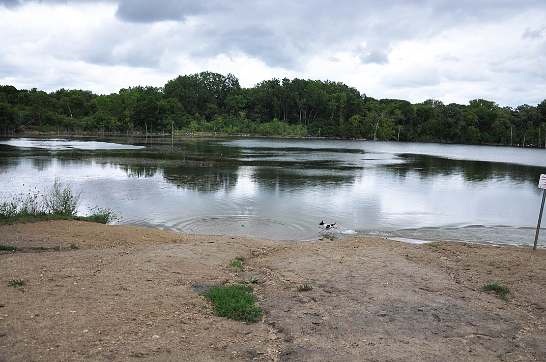 To break up the monotony, I scheduled in several dog parks. In the morning, just to take the edge off, we stopped at a nice big human park in Morton Grove. Big signs saying dogs must be on-leash. So we went to the furthest corner and kept an eye out for rangers or any park-users that might be annoyed by us. One of the nice things about the Chicago area is that they have carefully protected lots of natural space called “preserves”. North of Chicago, there are more than a dozen spaces specifically for dogs. We all wish there was time to check out all of them but I made a point to get to two today. These photos were taken at the amazing Libertyville Dog Exercise Area which had foresty trails and an enormous lake. It was well-fenced but not enough for naughty little Grem who squeezed through for about ten minutes of chipmunking.