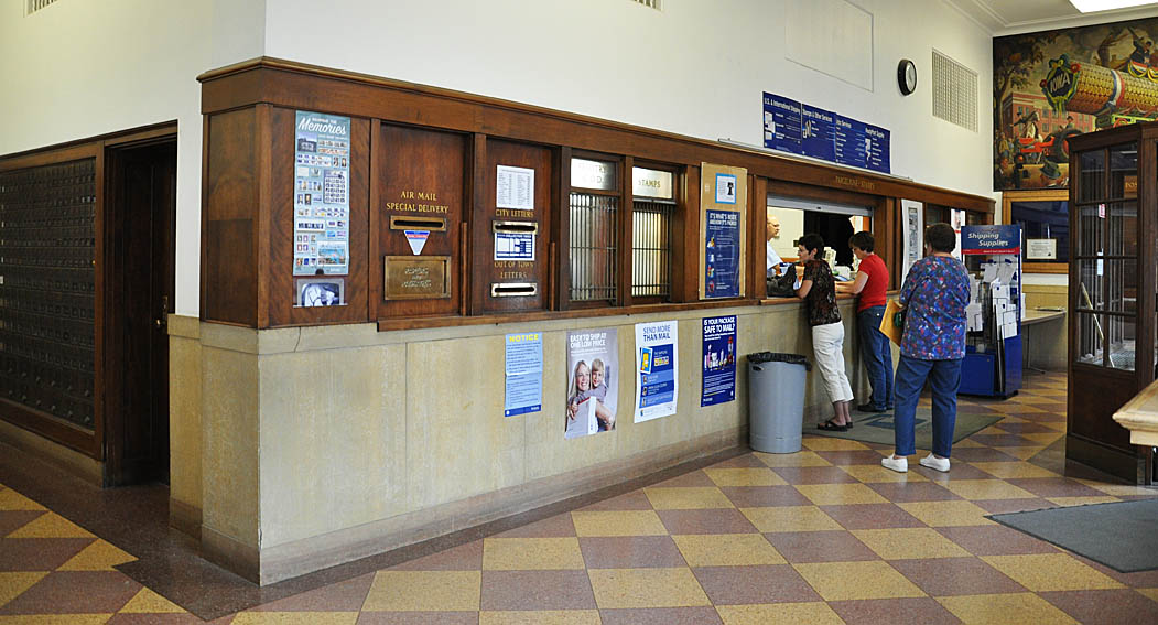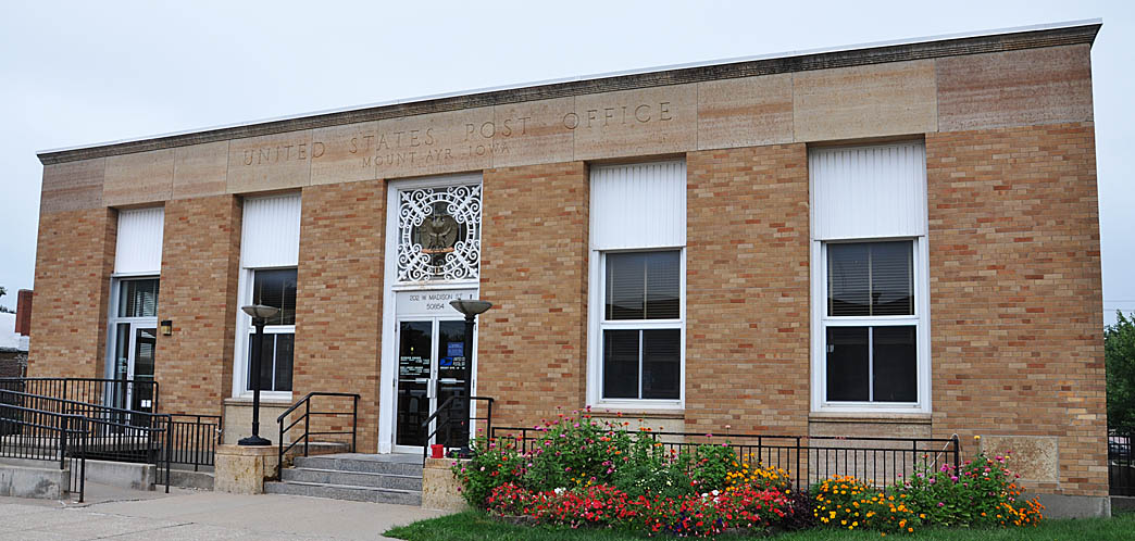 The reason I stopped in Mount Ayr — a rather unassuming post office. I had read that their WPA mural inside was incredible — and it was. There were also other neat interior details — the dark wood paneling, tile floors, post office boxes, counter service — sure nothing like my post office back in Brooklyn with the bullet proof glass!