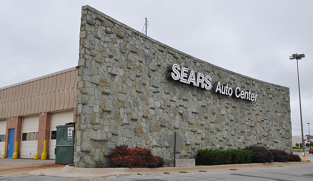 The CrossRoads Mall in Omaha, NE still has at least one mid-century touch. This curved wall at the Sears Auto must have had a funkier font when the mall opened in 1960: