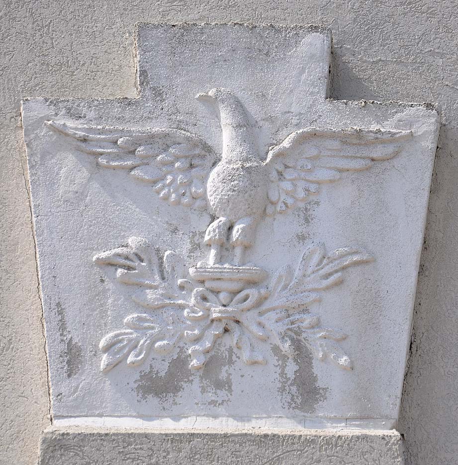 And then, this is my stoop — a larger shot to show you the worn but still nice detail on the front of it. The steps lead up from the left to this part. I’ve lived in this apartment for about 18 years so it’s about time I took a photo of this!
