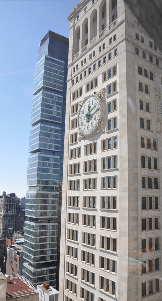 From the 20th floor, here’s a view of the Met Life Building and its clock. There are clocks on all four sides of the building. The modern building to the left was completed last year: