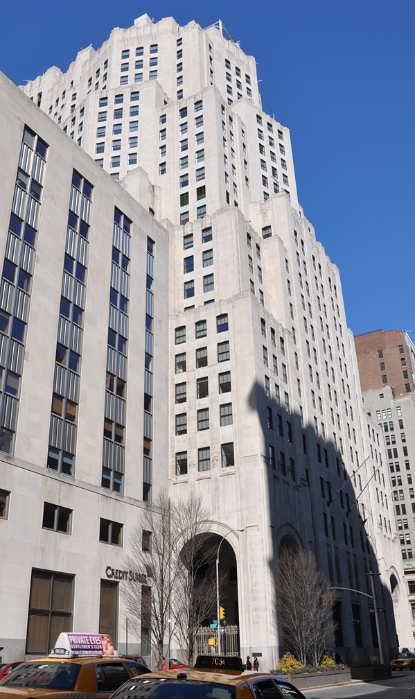 I’ve worked in this building in Manhattan for about 14 years now. The building at the left with the “Credit Suisse” nameplate is actually a separate building. My building is the Art Deco one on the right. It has a stunted look because it was never finished. There were plans for 100 stories but then the Depression happened and they just capped the building off at 29 floors.