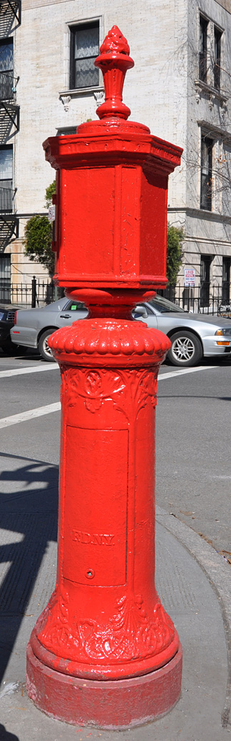 This old fire call box is right across the street from my building so I have great personal attachment to it. I believe it’s cast iron and probably from the late 1800s. There’s a modern-looking metal fire alarm device on the other side of it so I think it’s still functional.
