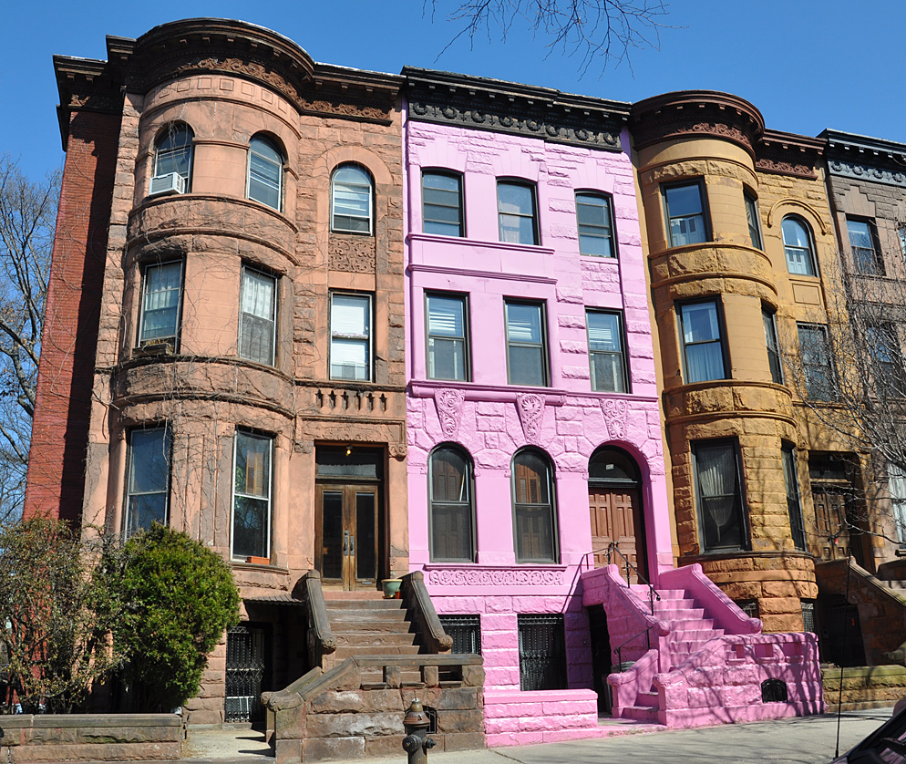 There among all the architectural splendor is this anomaly: the Pink House. The owner painted it pink back in 1968 when there were no landmark laws against such things. There has been some talk of the owner, who is in his 90s, selling the place. In which case, the building would most likely be repainted. A house this size in Park Slope goes for about $2 million.