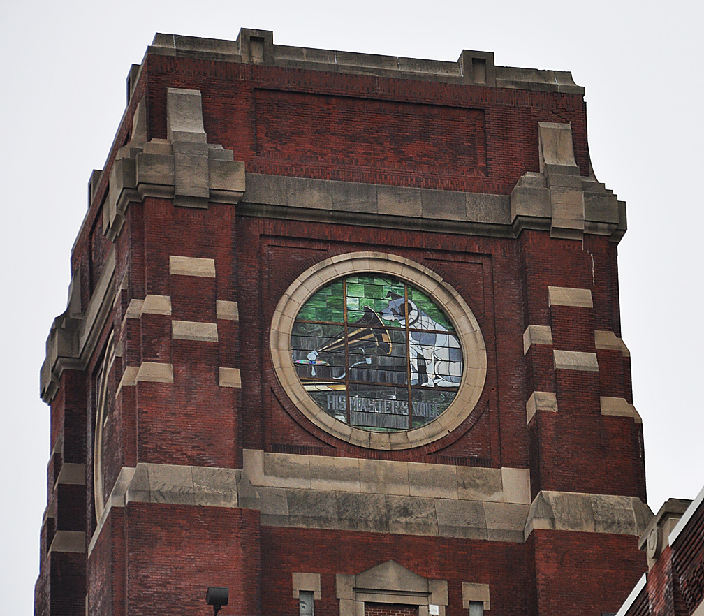 I’ve been wanting to see the “Nipper Building” in Camden for a long time now. Although the stained glass windows in the tower are recent replacements, they’re still very neat. This RCA building was one of several here – the others were demolished. The building now houses the Victor Lofts. Here’s some more about it: