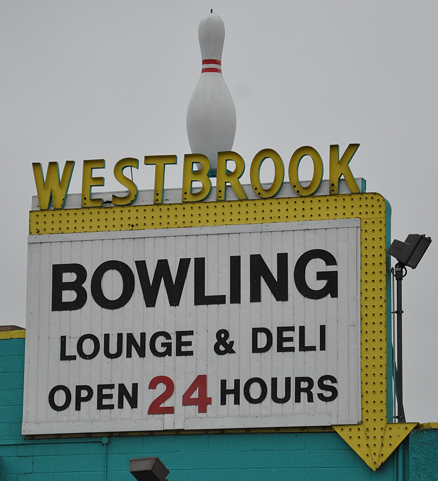 Quite a paint job on this bowling alley in Brooklawn! Something tells me, not the original colors. Although the sign is missing both bulbs and neon, it still looks pretty cheery in lemon yellow.