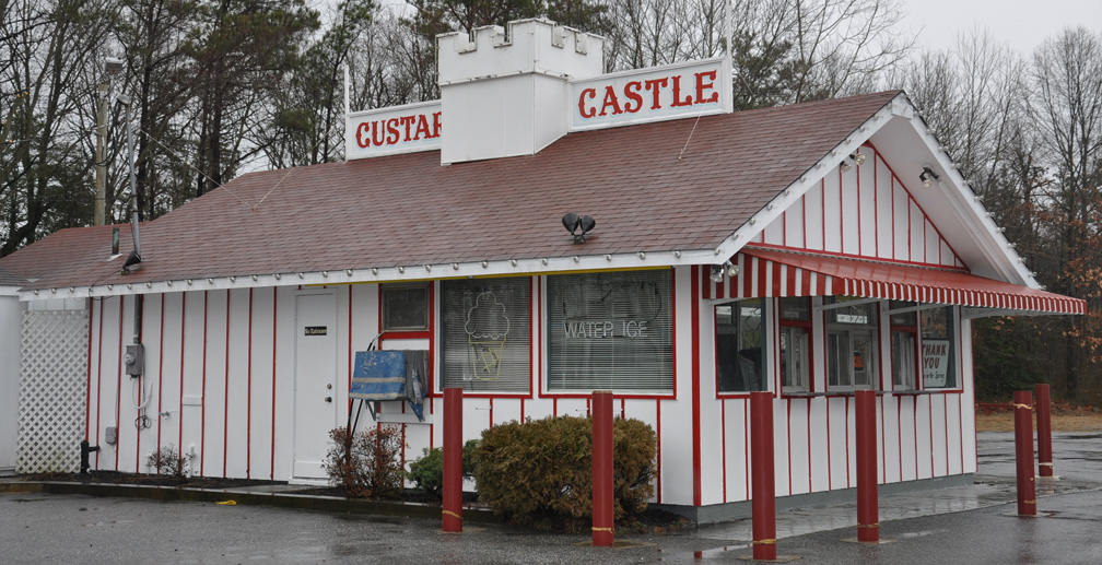 From Mays Landing. The Custard Castle is closed for the season or maybe just sensibly closed on Fridays when it rains. Love the roof detail: