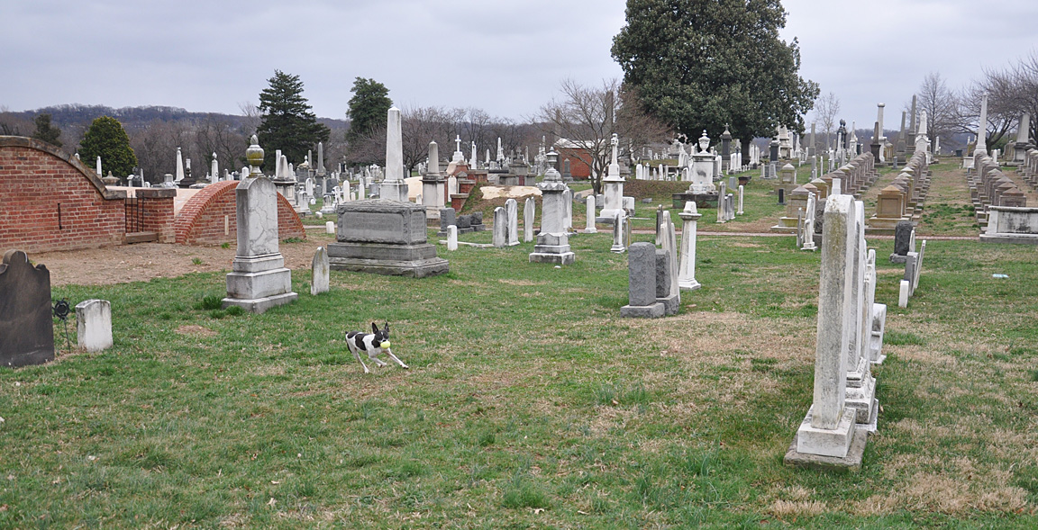 Doggie batch #2 — but mixed with historic tombstones to make it more palatable for you non-dog-lovers. Whenever in DC, I make a pit-stop here at the Congressional Cemetery. Dogs are allowed off-leash here. I know I posted some photos of my guys here last year or the year before. This was Grem’s first time here and the bars surrounding the place would be very penetrable if she desired. So the lucky girl got to wear her humongous zapping collar. The need didn’t present itself to use it though and she had a blast running the vast expanses and running right back each time I called.