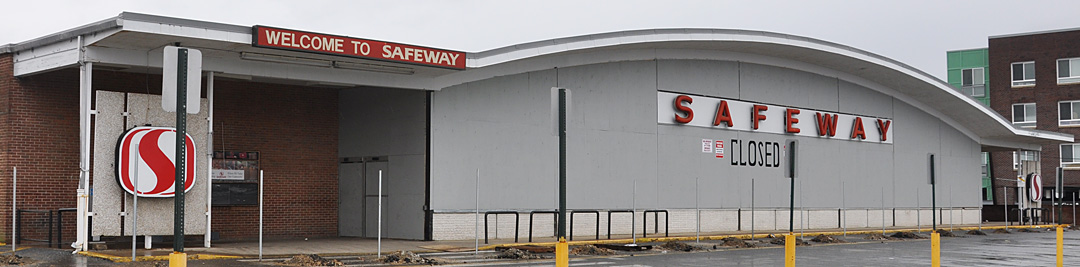 And just across the street – for another loyal blog-follower – proof that there were Marina-esque Safeways here in the East. Although, as you can see, this one is quite blatantly closed: