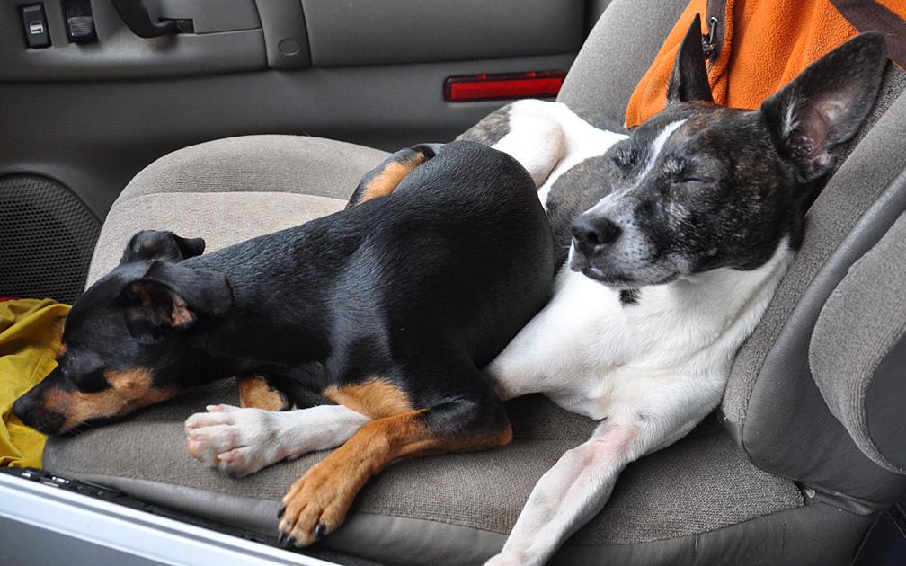 That’s Grem doing a run-by at center and Fixie sniffing something at right:
