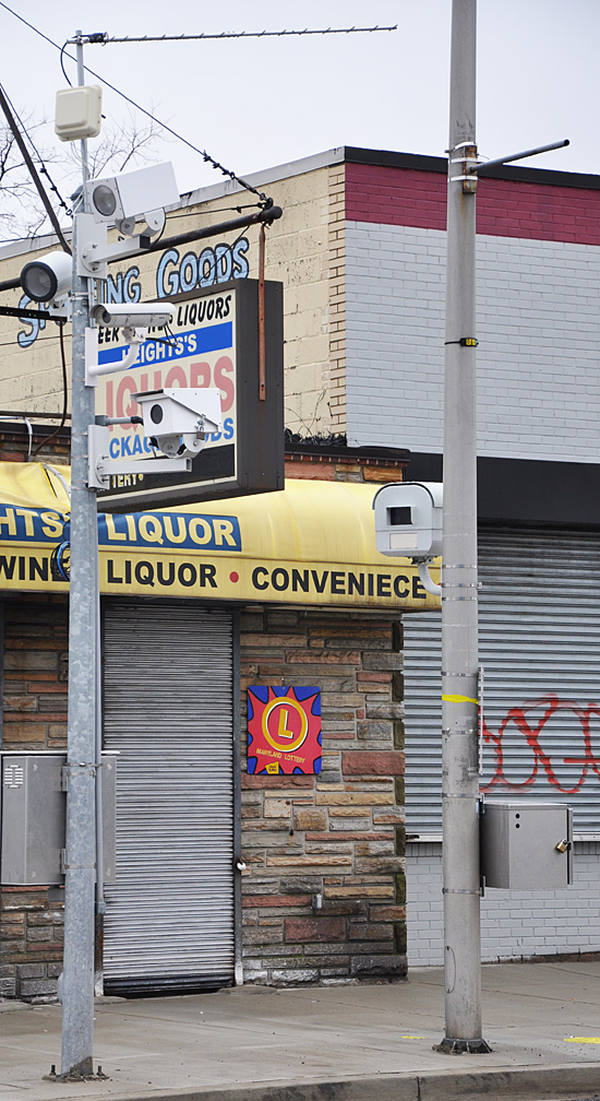 First off — I forgot to include this photo from yesterday in Baltimore. I’ve never quite seen an array of Big Brother cameras like. I’m not sure which are traffic related and which are just general surveillance. Or maybe they are all just for show? I guess we’ll be seeing a lot more of this stuff. Or not – as the cameras get smaller and less noticeable.