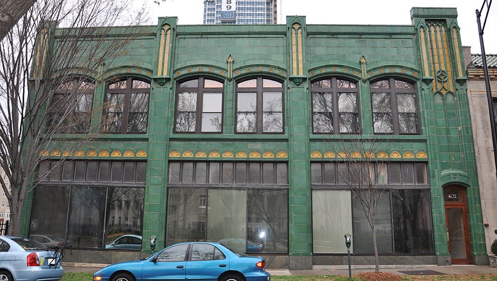 I have always loved this green building in Charlotte. Gothic Deco? I believe it’s faced with what they call “polychrome terracotta”.
