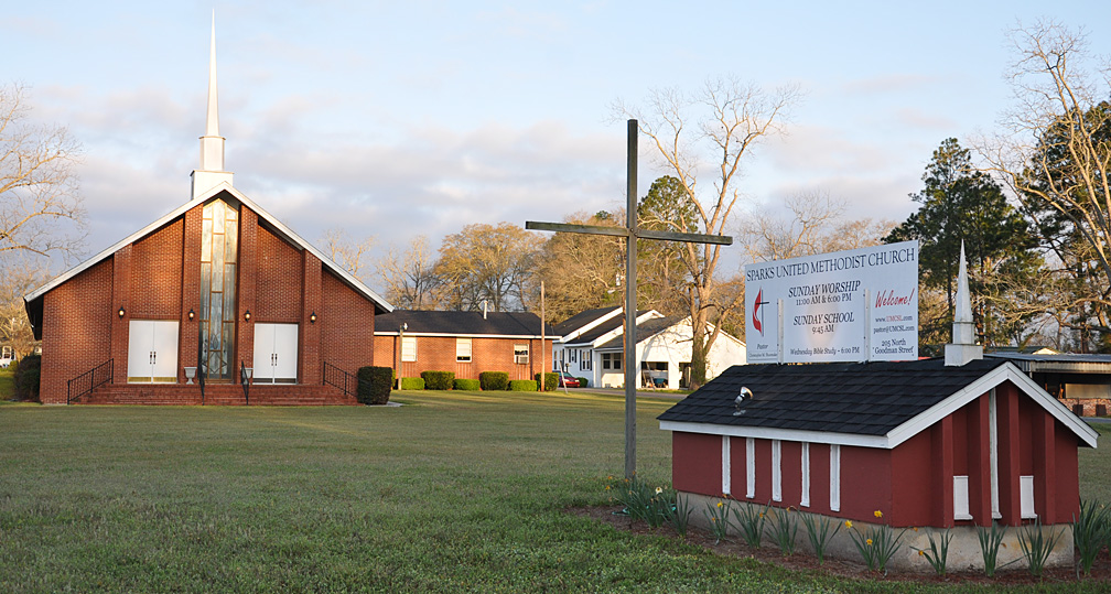 This church in Sparks, GA uses a model of their building for their sign: