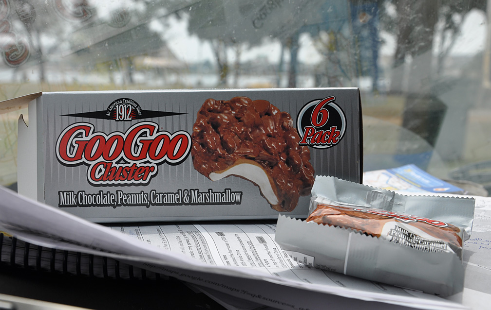 So, at one of those Florida Welcome Centers yesterday, I had to stock up on this Southern snack item. It was a hard choice between three types: original (peanut, caramel & marshmallow), cashew (caramel & marshmallow), or peanut butter (marshmallow, no caramel). I went with original and was not disappointed. I’ve had them before but this was a super fresh batch — much smoother, meltier. Wonderful! Six of them and I think I have two left.