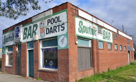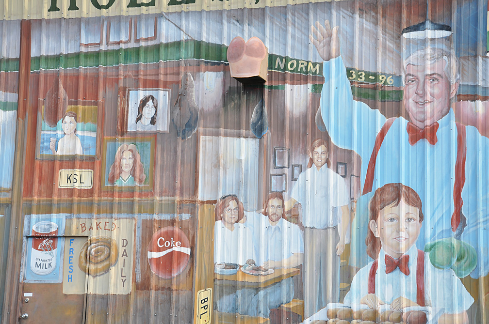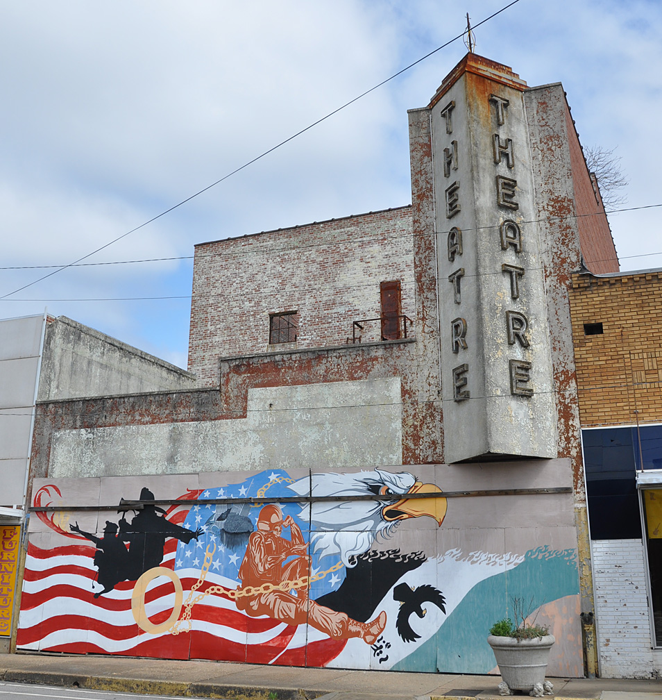 Back across the border, here’s a sampling from Roanoke, AL. I guess the mural helps the situation. Maybe.