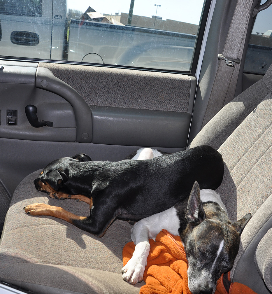 The dogs were digging the sunny interior as well. Here’s Grem also soaking up the heat from her very tolerant pal:
