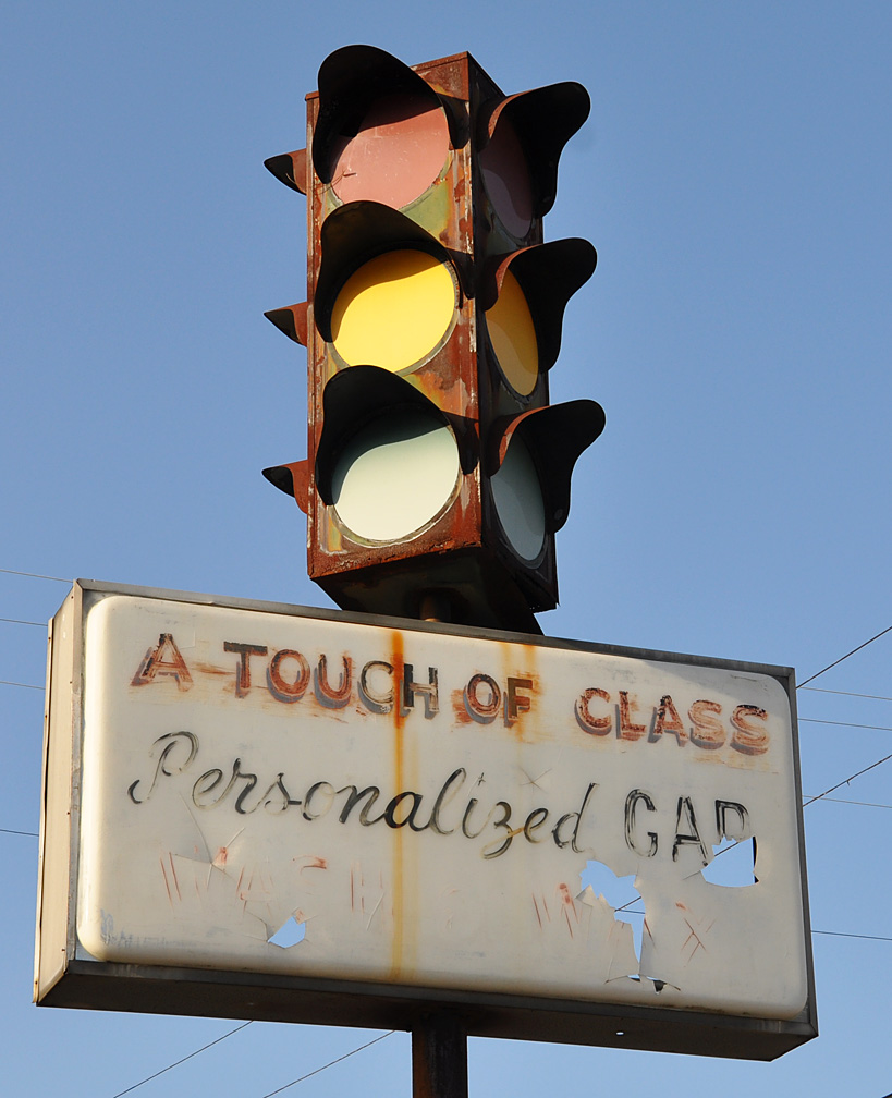 And last one for the day. I had never been to Selma before and thought it was really great and interesting. Cast iron balconies and interesting buildings & signs. This sign fairly modern but I thought it was very clever. Perched way high so you wouldn’t mistake it for a real stoplight — and also about twice as big as the real thing. But still, drivers are so programmed to look at stoplights, how could you miss this thing?