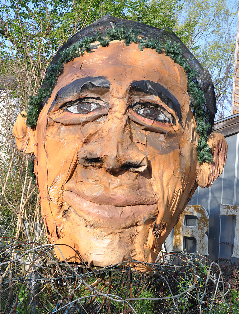 And this one sort of sent me over the edge. This Obama head (right?) is about six feet tall and in front of an art studio / gallery.