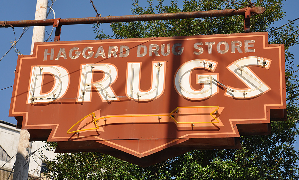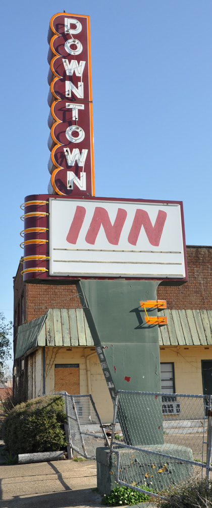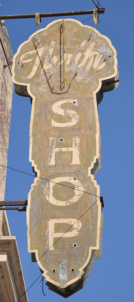 This sign was in Belzoni. I have no idea what it was before it was a thrift store. It has a terrific zig-zaggy shape: