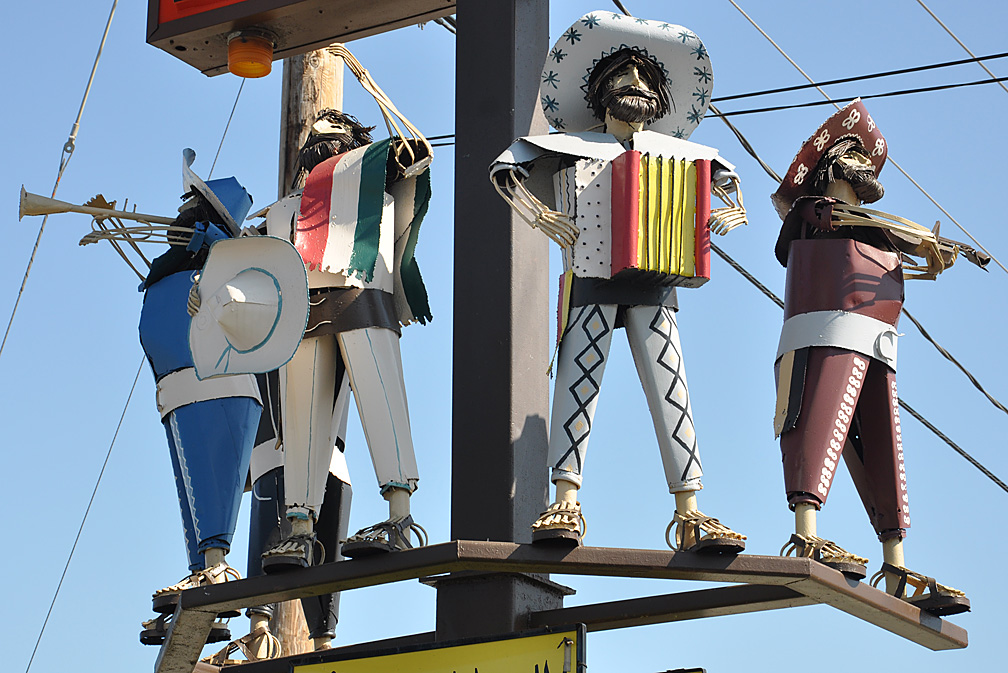 Last one before I crawl off to bed. Taco Sombrero in Gulfport appeared to be just another semi-fast-food Mexican restaurant in Gulfport. But these nice mariachi figures were installed above their plastic box sign: