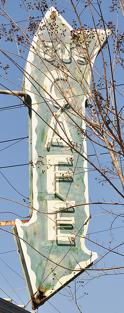 One good thing about traveling in Spring is that the trees haven’t filled in yet, obscuring signs such as this one for Gus’ Cafe: