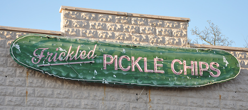 No food shots tonight — but I can give you a modern pickle sign from Louisville. The place features fried pickle chips. No, I didn’t get any: