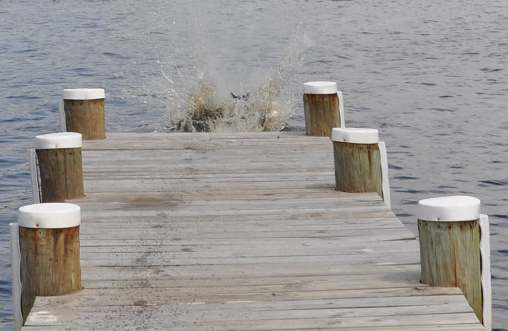 Nik, on the other hand, can never get enough of water retrieving. This place had multiple docks for him so we had a lot of fun. Ker-splash! Even on impact, you can still make out his giant ears: