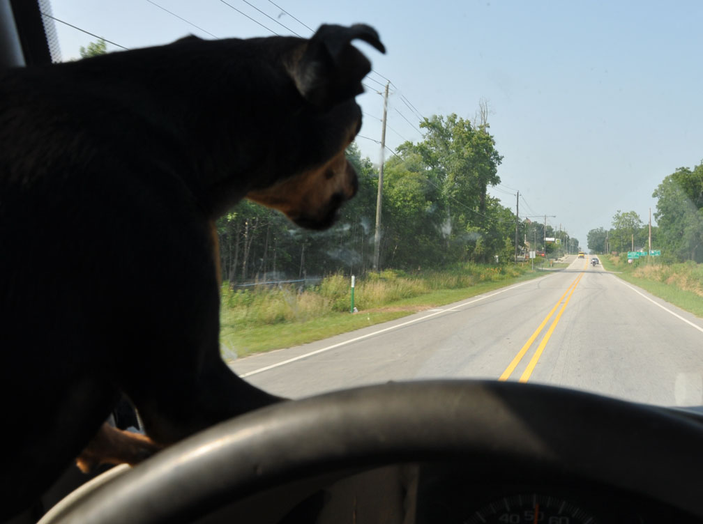 Back to the dogs again for a second. Imagine for a moment, the joys of traveling with four terriers. Imagine the ear-splitting sounds, just inches from your ears, of one canine soprano. Joined vocally by three other dogs, mostly just because. All because of motorcycles. Every couple minutes in nice weather. Deafening, incessant. I could break out the bark spray collar, but hey. And just the sight of it makes Nik a nervous wreck even though I only put it on Grem, the instigator. So, I just tough it out most of the time, and scream at them to knock it off when I need to really focus on something. Still want to ride along with us, huh? There’s one just ahead that will not escape the wrath of this never-weary traveler: