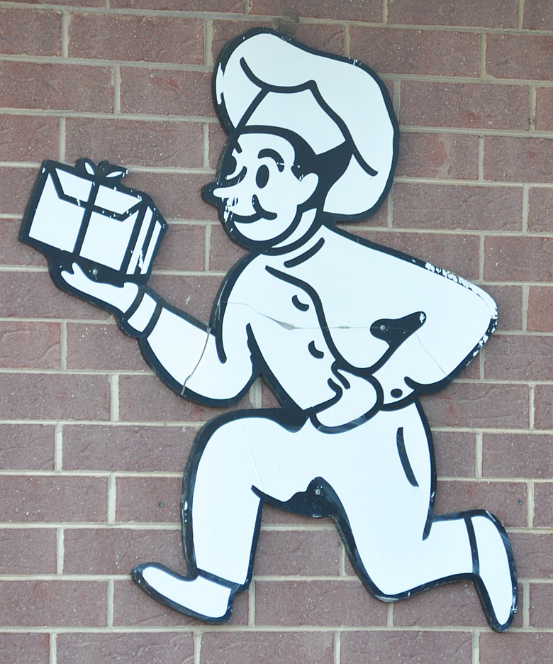 and on the side of a bakery building — must photo all signs with bakers and chefs:
