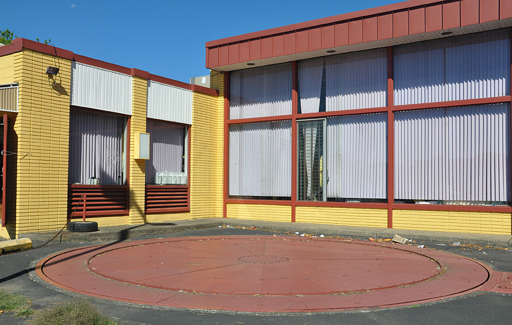 I discovered this place in Philadelphia about 10 years ago and am always relieved that it’s still there. This is the only example that I have seen of one of these turn-table gadgets. When space it tight, you would drive onto the turntable, make a delivery or pick something up, and then you (they?) would spin your car the other direction on this to exit. Not the best phrased explanation but I hope you get it. Sadly, the turntable hasn’t been used for decades. Are there any more of these things out there anywhere now? Unfortunately, this place has updated their sign with a much plainer one. This was how it looked in 2003: