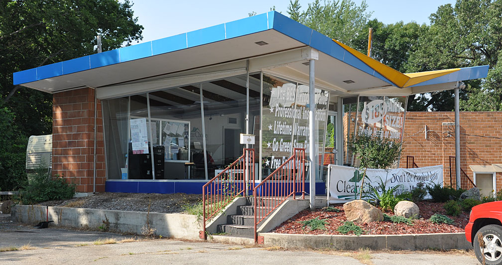 This butterfly-roofed building is from Mason City. My first guess is former gas station since it’s on a big enough lot. But it might have been a drive-in restaurant, ice cream stand or something else: